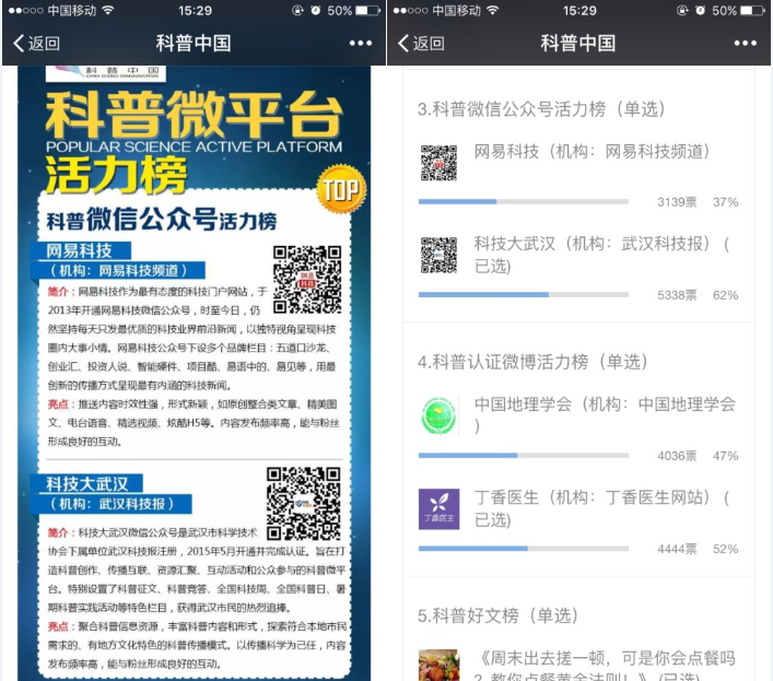 该榜单评选主办方为中国科协官方背景。此次评选,自1月25号开始投票,至2月1日结束。在“活力榜单”评选上,“科技大武汉”的对手是“网易科技 ”!