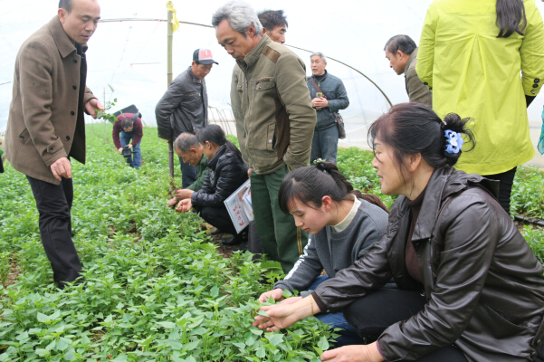 培训后,江夏区高级农艺师郑彬带领村民来到沛美达农业科技示范园大棚薯尖种植区域进行了现场观摩和指导。