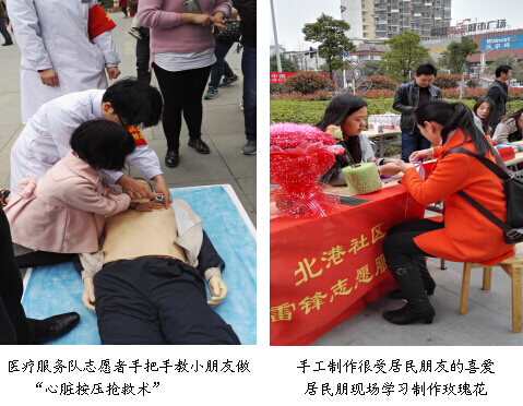 3月5日是“雷锋纪念日”。这天,洪山街办事处组织了10支志愿者队伍在洪山街北港城广场开展便民服务活动。