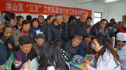 刘六村是洪山区工会、洪山区科协“三万”工作联系村,驻村工作组在调查中了解到大多数轻壮村民都外出打工,留守村民多数是体弱多病的老人和孩子,其中贫困户大多数是由于生病、残疾等原因导致贫困。留守的孩子们文化生活简单,学习途径单一。脱贫首先要铲除病根,针对这一实际情况,刘六村“三万”工作组组织开展了本次送科技送健康活动。此次活动现场发放健康知识、科普知识等书籍资料300多份,赠送了价值10000多元的药品。义诊从上午10点持续到下午4点,受到当地村民的热烈欢迎和一致好评。一位年老村民指着手里免费发放的药品,喜滋滋地感慨:“这真是为我们做了好事啊!我们走不动了,出去到城里看病太远,不方便。专家到村里上门看病,免费送医又送药,是为我们做了实事啊。”