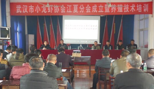 成立仪式结束后,新任武汉市小龙虾协会江夏分会副会长叶志平就“养什么虾”及“怎样养小龙虾”两个方面开展了技术培训。介绍了养殖过程中的技术要点和注意事项,重点讲解了小龙虾的生物特性、小龙虾高效养殖、虾稻连作生态养殖和管理、小龙虾质量安全、生态环境和病害控制等知识。