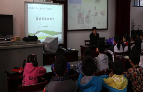 龚教授以“熟悉而神奇的光“为主线,采用大量科普方面的图片结合生活中光学的有趣的现象,用浅显易懂的语言,生动的实例,如:生活中怎样用光?“看三D电影为什么要戴眼镜”向学生介绍光学的知识,把同学们引入熟悉而神奇的光学世界。开阔了学生的视野,增长科学知识。
