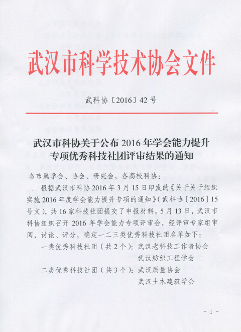 关于公布2016年学会能力提升专项优秀科技社团评审结果的通知