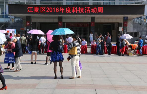 5月17日,区委宣传部、区科技局、区科协、区人社局、区高校办等35家单位在江夏区体育馆广场组织开展了主题为“创新引领,共享发展”2016年江夏区“科技活动周”主场活动。