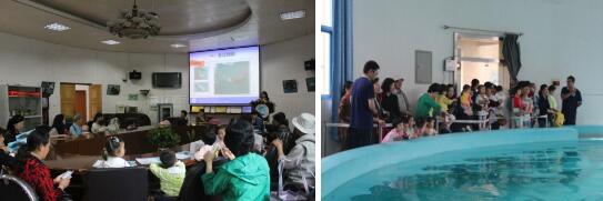 5月17日上午9时许,狮城名居社区组织了30余名儿童及家长参观白鳍豚馆。进入白鳍豚馆,科研人员首先为大家安排了一场科普讲座,江豚作为长江流域的旗舰物种之一,长江江豚的生存状况直接代表着栖息地的质量、生态系统的健康情况。借用《美人鱼》里面的一句经典台词: “假如地球上连一滴干净的水,一口干净的空气都没有。你挣再多的钱也是死路一条”。环境问题已经成为我们的重中之重,推行环保地球、绿色生活的健康观念,让我们身边的人树立起保护环境的重要意识。那么家长对孩子的环保教育是不可小视。改变家长的观念,就有更大的希望改善未来我们的生活环境。随后工作人员便带领大家参观了江豚馆和白鳍豚标本馆。在江豚馆里训导员告诉我们,江豚吃的是冰冻鱼,一日四餐,每头一餐要吃1公斤多小鲫鱼。 训导员不仅要保证江豚吃好,还要让它们玩好。喂食之余就要训练江豚多多运动。我们看到,随着训导员手中的“指挥棒”起伏,江豚一个个腾空飞跃,溅起水花片片。白鳍豚馆像是一个江豚的“幼儿园”,大大小小的皮球扔得满处都是,训导员则像幼儿园里的老师,陪伴它们游戏玩耍。