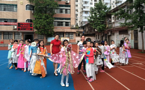 近日,万松街武展社区联合汉口辅仁小学举行“环保时装秀 低碳庆六一”的活动。