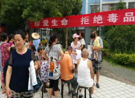 2016年6月26号上午,建材社区在青润家园东区广场组织居民参加禁毒知识宣传科普活动,众多社区居民积极参与禁毒相关知识的学习,通过些次对毒品知识的科普宣传,让居民了解了常见沾染毒品的途径以及毒品的严重社会危害性,教育引导居民们增强禁毒意识,自觉抵制毒品、远离毒品。