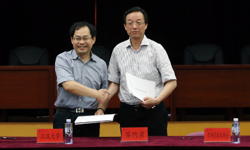 市科协巡视员张太玲,副主席陈光勇、郑华,江汉大学副校长童幸生、纪委书记张裕平及两家单位的部分中层干部参加了签字仪式。