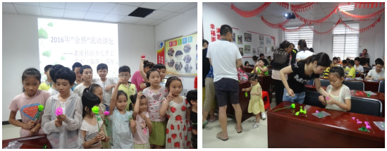 7月15日上午,花楼水塔街老甫社区邀请编织专家陈老师为辖区40名青少年学生讲授“水晶玫瑰花”手工制作。