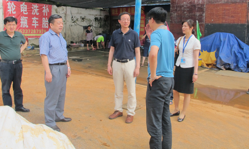 市科协党组书记桑建平、副主席陈光勇巡堤查险。