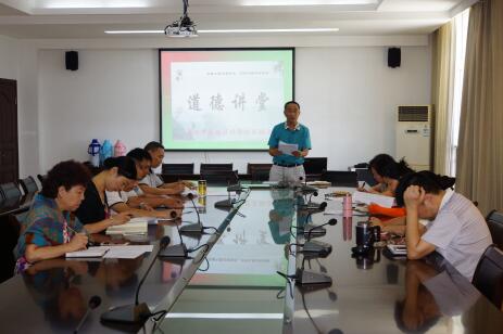 为推进文明单位创建活动的开展,区科协结合“两学一做”学习教育,围绕爱岗敬业主题,于7月29日上午10时,在四楼会议室举行“道德讲堂”活动。