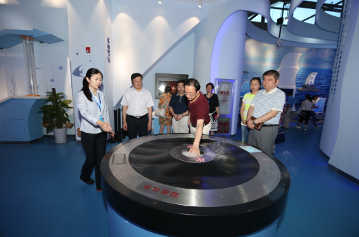 叶贤林一行参观了“探索与发现”、“地球与生命”、“科技与生活”、“儿童乐园”等常设展厅以及4D影院、球幕影院,详细了解了新馆内容建设、运营管理、展品设计及布展等工作情况。