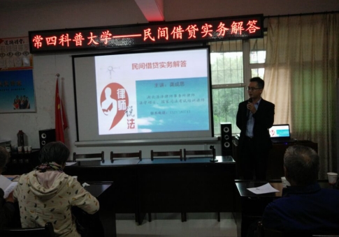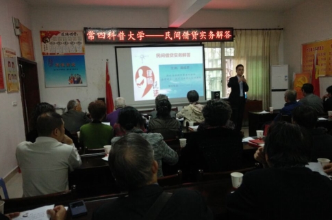 鉴于目前民间借贷纠纷频发,为了进一步提高社区居民的风险意识及正确运用法律武器来维护自己的合法权益,10月13日上午,汉兴街常四社区科普大学邀请湖北浩泽律师事务所律师龚成思举办民间借贷风险防范法律知识讲座,共有60位学员参加。