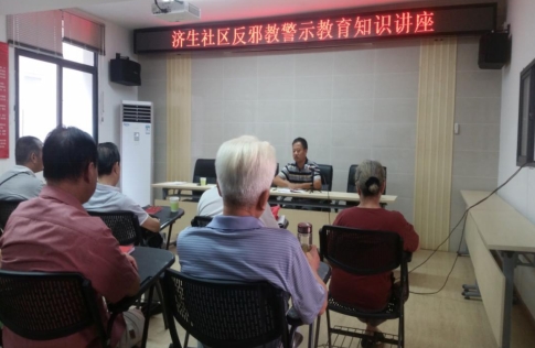 10月9日,前进街济生社区特邀街道王书记开展“反邪教警示”科普宣传讲座。