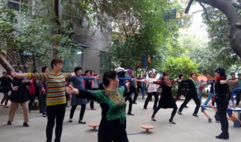 10月19日,常青街扬子社区科普学校别出心裁地把科普课堂从四楼教室内移至楼下小花园,请来枫叶红艺术团的甘老师,为学员们上了一堂户外课——第九套广播体操,院落安静整洁,四周绿树环绕,枝条摇曳,新安装的休闲凳锃亮舒适,在一阵阵清脆悦耳的音乐声中,大家整齐有律地舒展着身体,认真投入、兴致勃勃,一会儿就脸泛红光、满面生津。秋令时节,坚持适宜的体育锻炼,不仅可以调心养肺,提高内脏器官的功能,而且有利于增强各组织器官的免疫功能和身体对外界寒冷刺激的抵御能力。这堂广播体操简单易学、运动适度,学员们上的是意兴盎然,深受欢迎。
