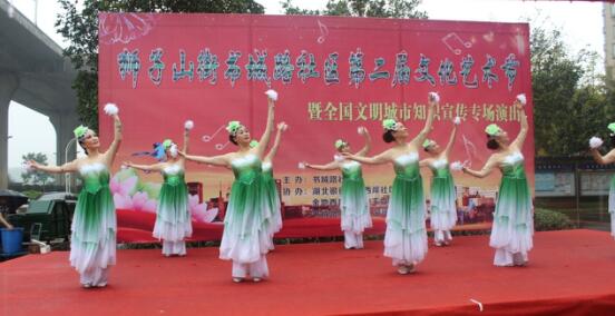 金秋十月,书城路社区在武汉市迎接全国文明城市测评督查工作的大背景下,于10月20日开展了社区第二届文化艺术节暨全国文明城市知识专场演出。本次文艺演出意在通过精神文明娱乐活动,发挥文艺骨干团队带动社区群众积极宣传和参与文明城市创建工作,珍惜文明城市荣誉,将中国梦,社会主义核心价值观和武汉精神等文明知识深入人心。争做文明有礼市民,500余名居民群众参与文明城市调查问卷和文明知识问答,为巩固全国文明城市创建宣传工作营造良好浓厚的环境氛围