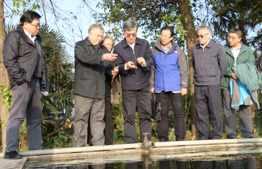潘云鹤院士一行一到生态站,便立即赶赴野外实验基地,考察那些或沉于水下20多米,或浮于水面,或挺于水上的“治污宝贝”。当了解到该生态站建设已经成为世界一流,采集的水生植物标本数量17万余份;拍摄水生植物图片20万余张;收集水生植物种子5000余份……潘院士对生态站的工作非常肯定。