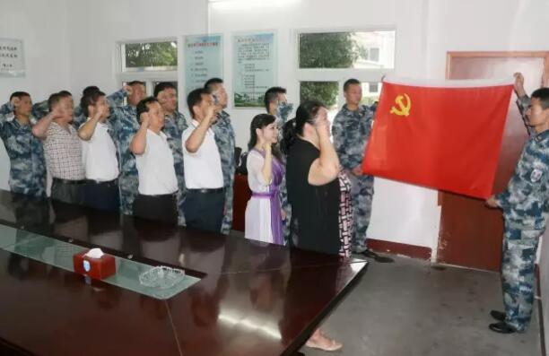 区科协党支部全体党员干部和基地官兵一起宣誓,重温入党誓词