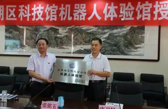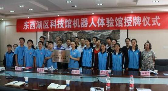 授牌仪式结束后,区教育局基教科张少华同志还布置了下半年科技具体工作,要求各基地校积极组队,认真参与下半年的各项省市级比赛,特别是11月份在我区举办的2016年湖北省青少年航空航天、车辆模型锦标赛,做好东道主,争创优异成绩。随后,参会人员一起参观了机器人体验馆,并观摩学生演示机器人足球比赛、坦克机器人侦查等竞赛项目。