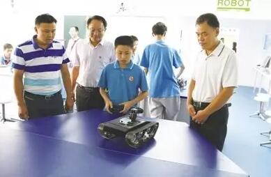 东西湖区科协调研员唐卫星致贺词时表示,吴家山三中作为东西湖区内十二所基地校之一,在教育系统和科技方面有着良好的基础。基于机器人体验馆这个平台,东西湖区科协还将加大力度,根据科技教育的要求,将科技教育逐步模式化并进行完善。随后,参会人员一起参观了机器人体验馆,并观摩学生演示机器人足球比赛、坦克机器人侦查等竞赛项目。