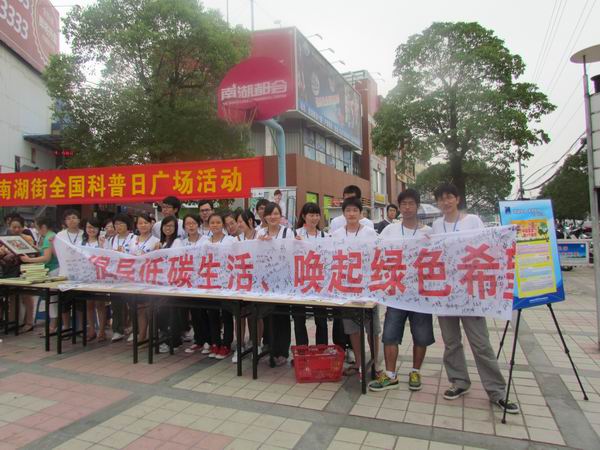 市科协网讯 九月十七日上午8;30点,南湖街在中商平价广场举办了大型全国科普日宣传活动。各社区科普站成员,华中科技大学武昌分校科普志愿者以及有科普特色作品家庭的作者和辖区居民群众积极响应号召,近千人纷纷在写有“倡导低碳生活、唤起绿色希望”的横幅上签名。此外还开展了卫生服务咨询、手工编织作品展示、科普书画展等活动。其中免费发放《绿色生活手册》500本、环保袋200个、有绿色环保标记的小礼品600件。