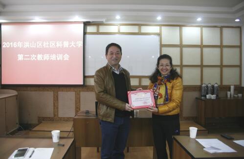 洪山区社区科普大学建设列入2017年全区十大民生工程,给予了专项资金支持,计划明年完成30个社区教学点建设,300次以上的讲课。将把社区科普大学作为普惠居民的民生工程办好,办扎实。为适应社区科普大学的快速发展,洪山社区科普大学教师培训密集进行,现已举办了两次,今后将不定期经常进行,以确保教师的讲课质量,为社区科普大学品牌树立打下坚实的基础。