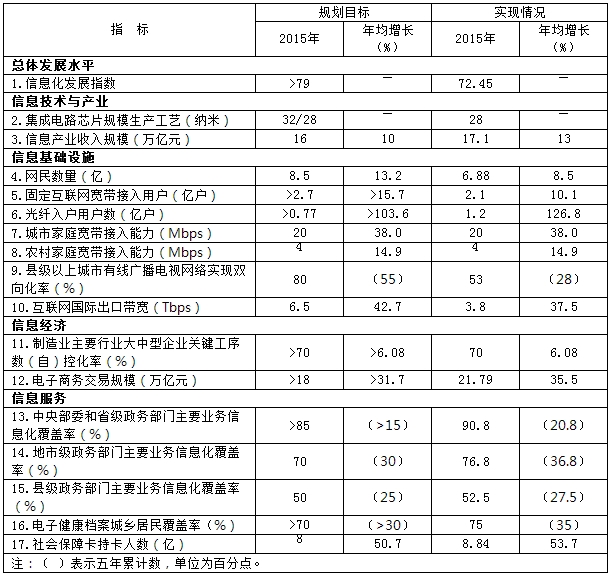 “十三五”信息化发展主要指标
