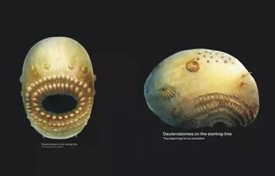 “人类远祖在进化上的里程碑式创新则主要发生在5亿多年前的寒武纪大爆发。5.2亿年前,澄江动物群中的‘天下第一鱼——昆明鱼目’代表着刚刚创造出头脑和原始脊椎的‘宏型’人类祖先;而5.35亿年前的皱囊动物应该与创造雏形鳃裂的微型人类远祖亲密相关。”舒德干说。