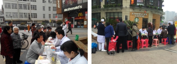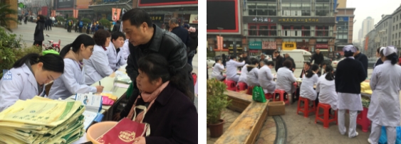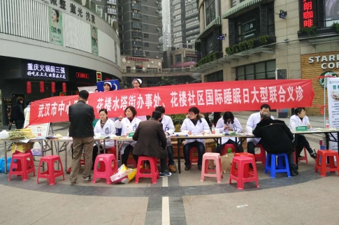 2017年3月21日上午“3.21世界睡眠日”到来之际,花楼水塔街科协在花楼社区携手武汉市中心医院耳鼻喉科专家,为辖区街坊和路过市民送上了“健康睡眠 远离慢病”大型义诊志愿活动,“人民好医生”袁琨主任、神经内科:经屏主任、呼吸内科:高山主任等耳鼻喉科专家在江汉路宝利金-中央荣御广场,为街坊们和路过的市民提供免费咨询和义诊。同时,科普志愿者在现场为老年人们提供居家养老便民理发、惠民就餐等服务项目咨询。