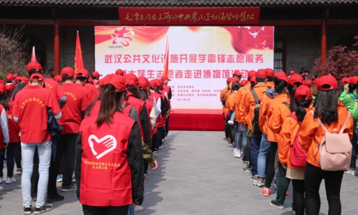 3月29日下午,武汉市公共文化设施开展学雷锋志愿服务暨大学生志愿者走进博物馆活动在武汉革命博物馆举行。本次活动由市委宣传部、市文明办、市教育局、市民政局、市文化局、团市委、市科协、市文联8家单位联合主办。来自武汉大学、武汉理工大学、湖北大学、中南财经政法大学等10所高校的200多名大学生志愿者代表与各图书馆、博物馆、美术馆、科技馆的代表共同参加了此次活动。