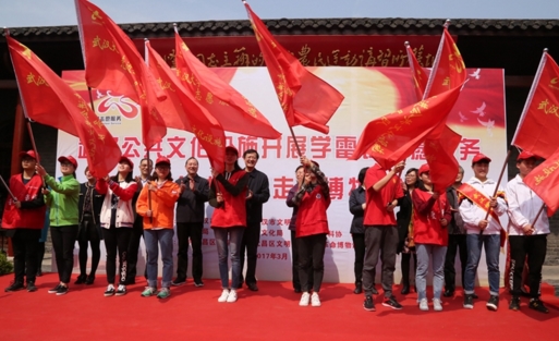 出席活动的领导为“武汉大学生走进公共文化设施志愿服务队”代表授旗