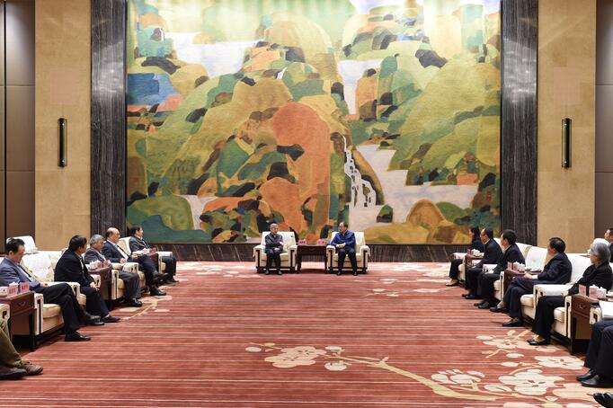 市长万勇与出席会议的院士座谈。副市长刘英姿、市政府秘书长刘志辉参加会议。市政府副秘书长姜铁兵主持会议。国家知识产权局专利局审协湖北中心、市科技局、市科协、湖北(武汉)院士中心及相关部门和三大产业领军企业的负责人参加了会议。