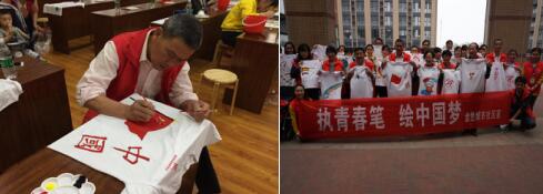 活动以高唱国歌拉开序幕,大家在文化衫上绘出了有关他们心中的“青春、梦想、国家”的图案。有以祖国河山、群雁展翅、五星红旗迎风飘为主题的,也有挥笔写下“中国梦”、“不忘初心 方得始终”。简单而用心的勾勒,鲜艳而精心的涂抹,所传达出的是青年朋友们的青春活力,更是乐观向上的积极生活态度。每一个作品都展现出新时代青年朋友们的蓬勃朝气,每一个作品的背后也述说着一连串的快乐记忆。