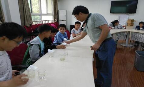 此次讲座以理论知识传授和科学实验两个形式开展。首先,张教授用通俗易懂,形象生动的语言,结合日常生活实际,辅以生动活泼的事例,为大家详细讲解了地球上水的分布、世界水资源、水的用途、水的循环、水的组成与形态、自来水的产生、饮用水这七个方面的知识。理论知识的学习结束后,张教授便开始指导学生开展与水有关的科学小实验,通过混凝沉淀、滤纸过滤、溶液的酸碱度测试、水与生石灰的反应现象这四个有趣的小实验,让大家对水的认识更加直观,还巩固了前面学习的理论知识,实验过程中,师生实时互动,现场气氛活泼。