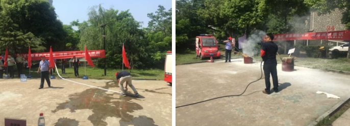 5月9日上午,操场社区运动场里进行了一次消防演习,消防队员进行煤气坛灭火、用消防栓灭火 、手持灭火器灭火等演练,也吸引了社区居民参与。