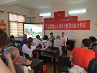 湖北省科协农函大蔡甸区分校玉贤街合贤村教学点紧密结合农业生产时节和农民生产需求,组织了一场科普报告会,进行林果业高产高效栽植栽培新技术培训,内容包括林果业生产管理、配方施肥和常见病虫害防治方法等。在报告会上,梁文专家为到场的村民作了林果高效生产模式及新品种推广注意事项,还就村民提出的梨、桃和葡萄的高产高效栽培新技术作了详细讲解,并现场发放科普书籍100多本。
