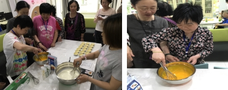 活动开始前,志愿者刘丹老师向大家介绍了制作曲奇和蛋挞所需材料,接着,刘老师一边讲解制作方法,一边现场操作,大家都聚精会神的倾听、观看,并且积极的参与到体验制作过程当中。在经过打蛋、和面、制作饼干、放进烤箱等一个多小时的制作后,大家的“成品”终于出炉了,顿时整个房间充满曲奇和蛋挞的香气。在品尝自己的劳动成果时,大家不时竖起大拇指连连点头表示称赞。