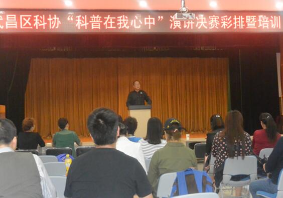 5月23日上午,武昌区科协“科普在我心中”演讲决赛彩排暨培训活动在武汉市社区科普大学武昌分校举行,由各街道社区和科普大学教学点初赛时选出20多名优秀选手参加决赛,选手按照各自抽签顺序依次上台进行演讲,演讲的内容丰富多彩,有讲科学生活小常识的、有讲科学学习方法的、有讲科技发展的,涵盖的范围非常广泛。