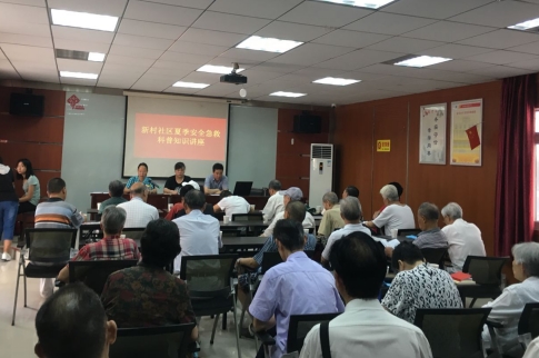 为了加强社区居民安全突发事故自救知识教育,提高居民紧急情况自救能力,6月1日上午,唐家墩街新村社区科普大学邀请社区安全教育专家,开展了夏季心肺复苏急救知识讲座。讲座以PPT教学和实践操作相结合的方式展开,详细为社区居民讲解如何调整体位、打开气道、判断呼吸、人工呼吸、胸外心脏按压等急救法。