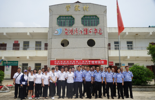 图为武汉科技馆第二党支部和长航公安局武汉分局汉口派出所党支部在管寨村开展结对扶贫的全体党员。