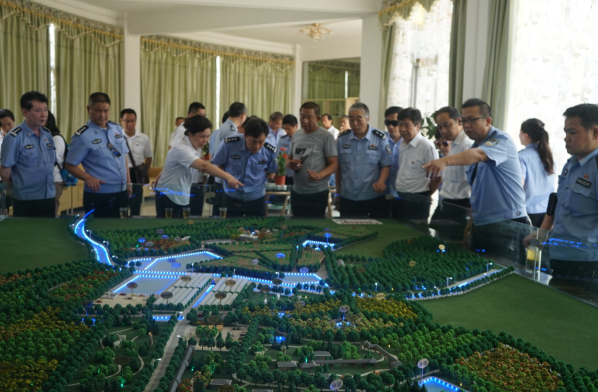 图为武汉科技馆党委书记刘青(左三)和长航公安局武汉分局副局长韩继松(左四)向管寨村村长(左五)询问管寨村建设情况。