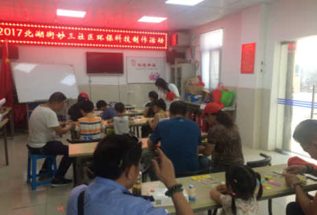 7月26日上午9点,北湖街妙三社区在社区青少年活动室组织辖区内青少年开展“创意环保 绿色生活”环保科技手工制作活动。
