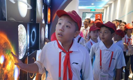 来自新疆的少先队员、少先队辅导员及随行工作人员分成七个小组在工作人员的带领下,兴高采烈地参观了各个展厅,认真聆听讲解,饶有兴致地操作各项科学展品,尽情地享受着科普饕餮大餐带来的无穷乐趣,受益匪浅。