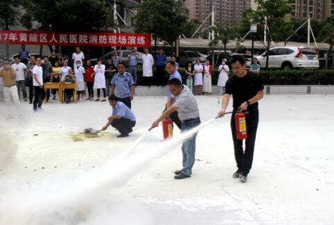 为认真贯彻落实“预防为主,防消结合”的消防安全指导方针,切实提高一线医护人员的消防安全意识和应急能力, 6月14日, 根据黄陂区人民医院党委部署,在人民医院运动场举行了安全生产月消防演练活动,黄陂区人民医院班子全体成员和各科室骨干共计30人参加。