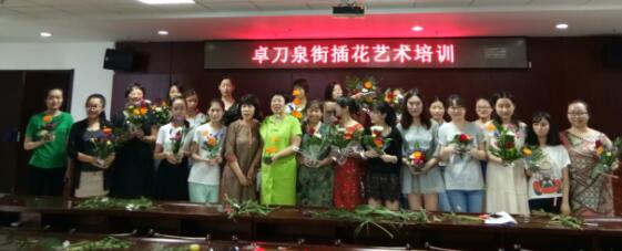 2017年8月11日,洪山区卓刀泉街科协组织了一场插花艺术培训活动,来自于街道及社区40余人参与了活动。