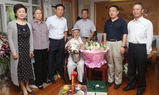 梁鸣、陈光勇将鲜花、果篮送给刘院士,祝他生日快乐,健康长寿!刘院士愉悦地接受了大家的祝福。武汉地区现有63位院士,过百岁的只有刘院士1位,也是为武汉地区最高龄院士。