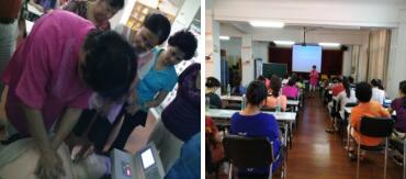 讲座中,鲁教授针对冠心病、糖尿病等发病率逐年上升情况以及在医生未来得及抢救病人就猝死家中的事件时有发生情况进行了讲说,鲁教授指出患者家属是否能够充分利用医护人员到达之前的这段宝贵时间进行合理的初步抢救,是提高急症抢救成功率的关键所在。理论讲解完后,鲁校长让学员们看了一段视屏,然后用人体模型演示急救过程,最后,学员们依次上台实际操作。操作成功的欢欣鼓舞,觉得不再害怕面对这类急发事件。