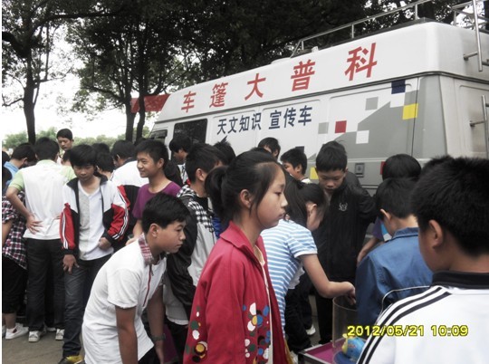 5月21日上午,区科协、区教育局会同市科技馆组织开展了科普大篷车进校园活动。科普大篷车开到索河中学,开展以“携手建设创新型国家”为主题,突出“科技与文化融合,科技与生活同行”的活动,全校400多名师生参观、操作及进行了科普演示活动。学生们非常珍惜这一宝贵时间,对每一件作品仔细观看和演示,通过与科普展品亲密接触,亲身感受到科学知识带来的快乐和科技展品的魅力,拓展了了解科学的渠道,启迪了他们热爱科学和勇于科技创新的热情。学校师生们希望“科普大篷车”经常走进校园,让学生们能在快乐中学到更多的科学知识。本次活动,激发了同学们学习科普知识的兴趣,同时,也突出宣传了科学思想、弘扬了科学精神。帮助青少年学生树立追求真理、敢于创新的精神,学会科学的认知方法,从而使科学的思想、理念和精神在学生的脑海里生根发芽。