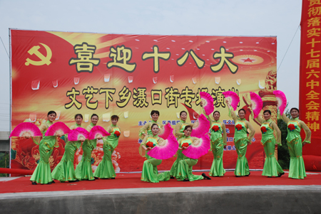 市科协网讯   近日,黄陂区老科协组织区木兰艺术团到滠口街什湖村送文化下乡,为什湖村的广大村民送去了一场精彩的“喜迎十八大”专题文艺演出。