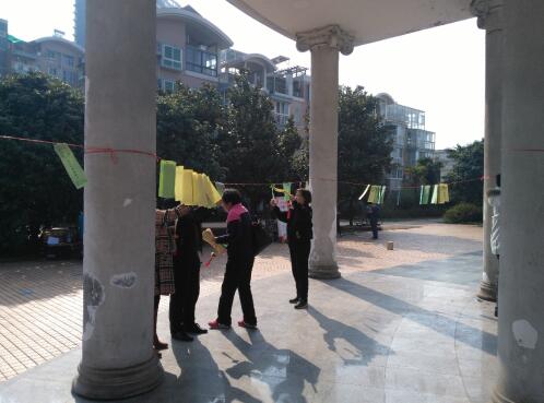 猜灯谜是此次活动必不可少的节目,社区精心准备的50条谜语悬挂在墙壁上,内容涵盖了字谜、生活用品、地名等多种类别,既有通俗易懂的趣味猜题,也有较为复杂的抽象谜题,既具娱乐性,又具知识性。居民争先恐后踊跃猜谜,认真琢磨,绞尽脑汁,你一言、我一语,互相提示和讨论,活动现场欢声笑语不断。